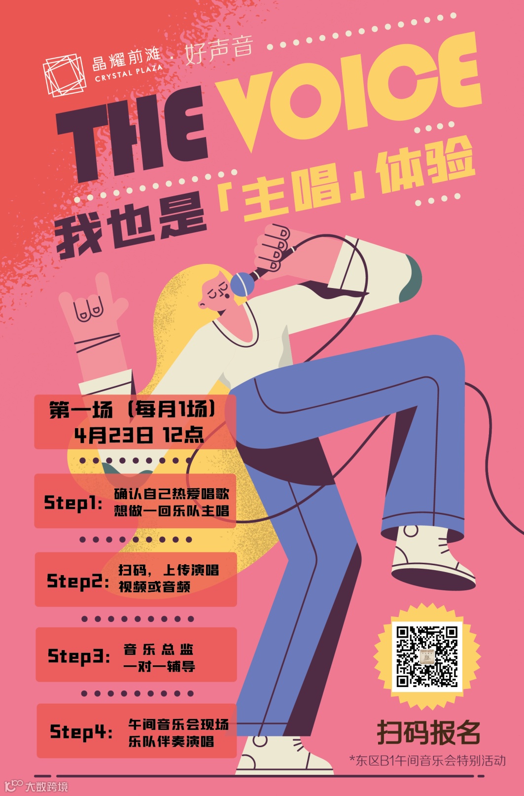 扫描海报上方二维码,或添加客服微信:tanxiculture,即有机会参与本次「主唱」体验活动,同时获得专业声乐指导和职业乐队老师的现场合作机会。