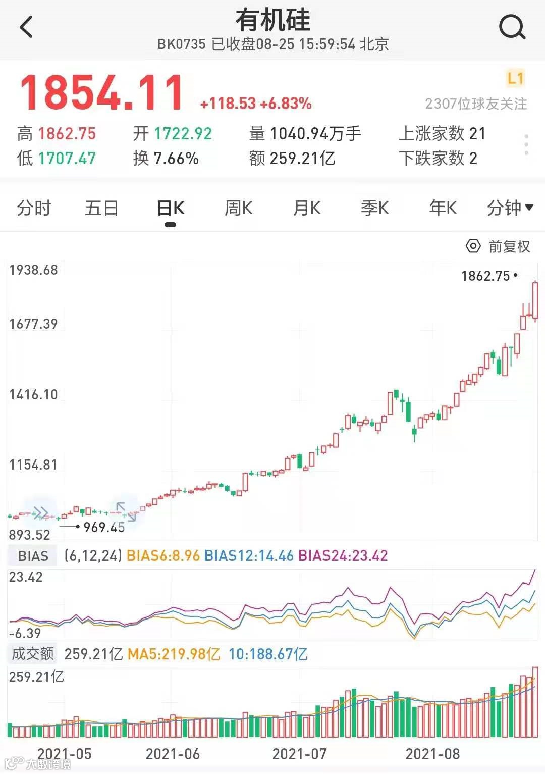 只要与有机硅概念相关,今年股票都大涨,但目前紧缺的DMC跟金属硅,生产厂家并不多。