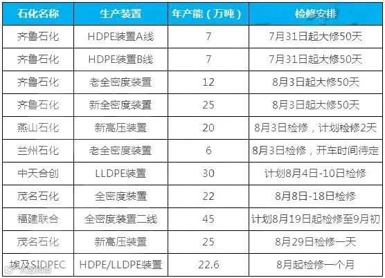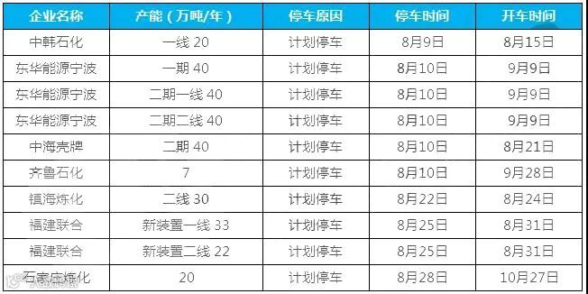 进入下半年以来,石油化工行业停车检修计划密集,陕西延长石油、石大胜华、中石化、齐鲁石化、齐翔腾达等大厂陆续宣布停车检修,涉及到的产能多达数百万吨,周期最长可达2个月之久,让本就货源紧缺的行情雪上加霜。
