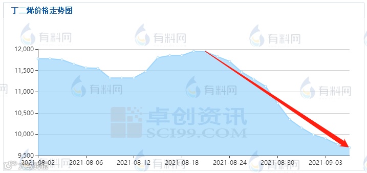 近日,刚刚刷新了三年新高的丁二烯产品连续13个工作日下跌。目前丁二烯报价9427元/吨左右,较8月初下调3753元/吨,跌幅28.47%,大厂也纷纷顺势下调了产品报价。