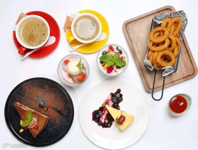 精选早午茶系列有:提拉米苏、三球冰激凌、芝士蛋糕、炸洋葱圈、美式咖啡、拿铁咖啡、轻饮、茶。