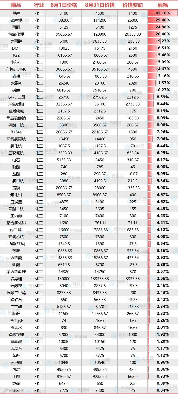 20余种化工品全线拉涨,且涨势迅猛,最高上涨超过26000元/吨,不仅令人咂舌。