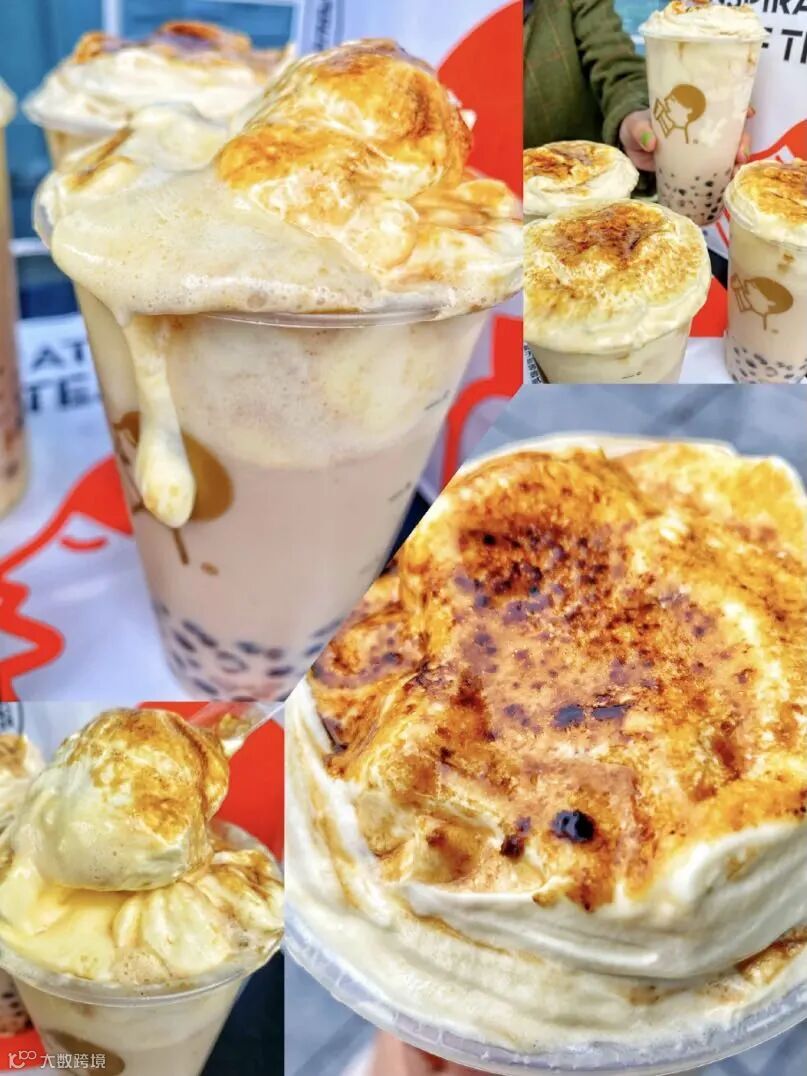 口味浓郁,料多饱满,超厚一层蛋糕扣进三种混合波波珠的奶茶中,再经喷枪烘烤出表层焦糖脆皮。丰富口感,多层享受,秋冬超绝美味的热量炸弹!