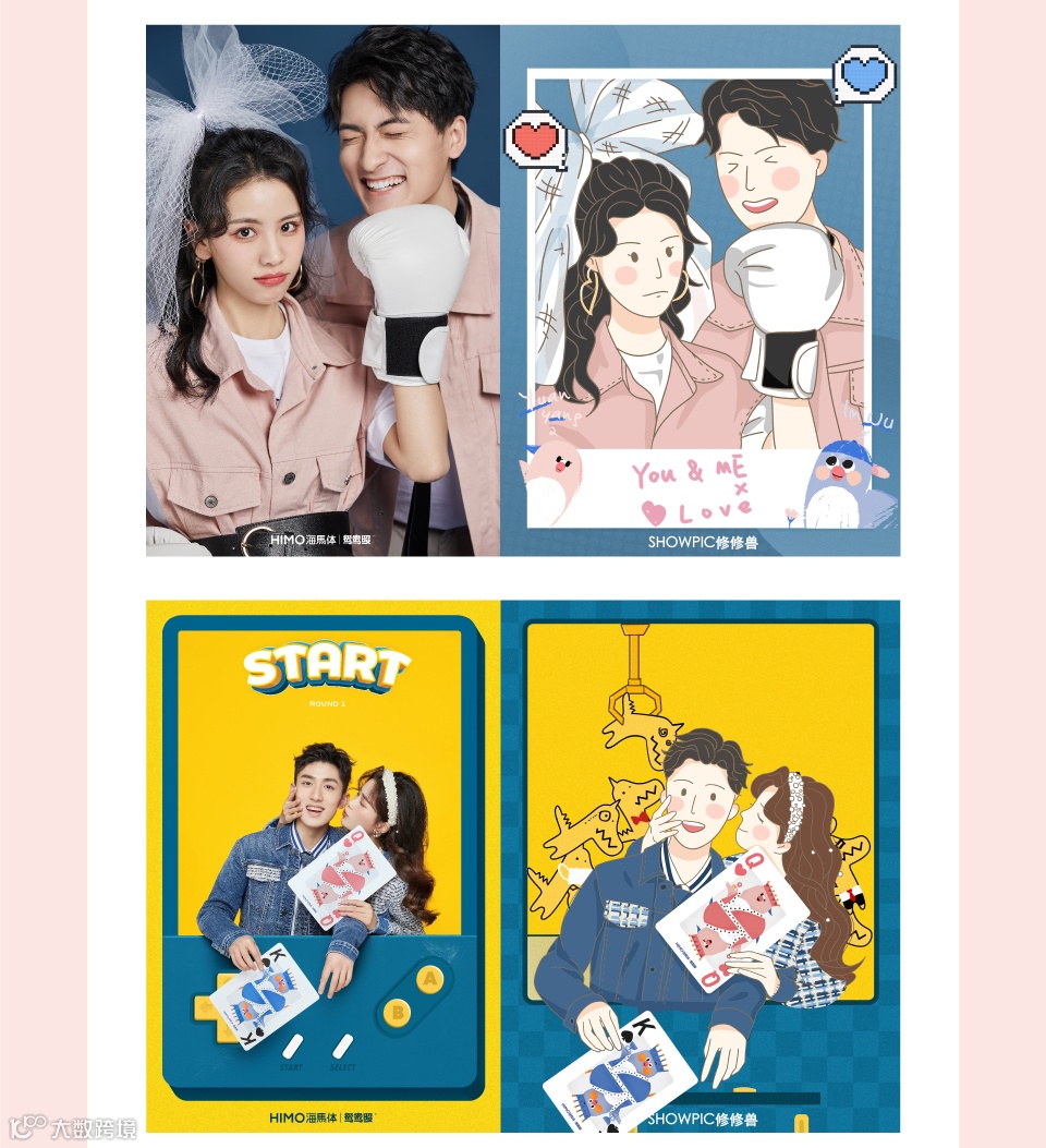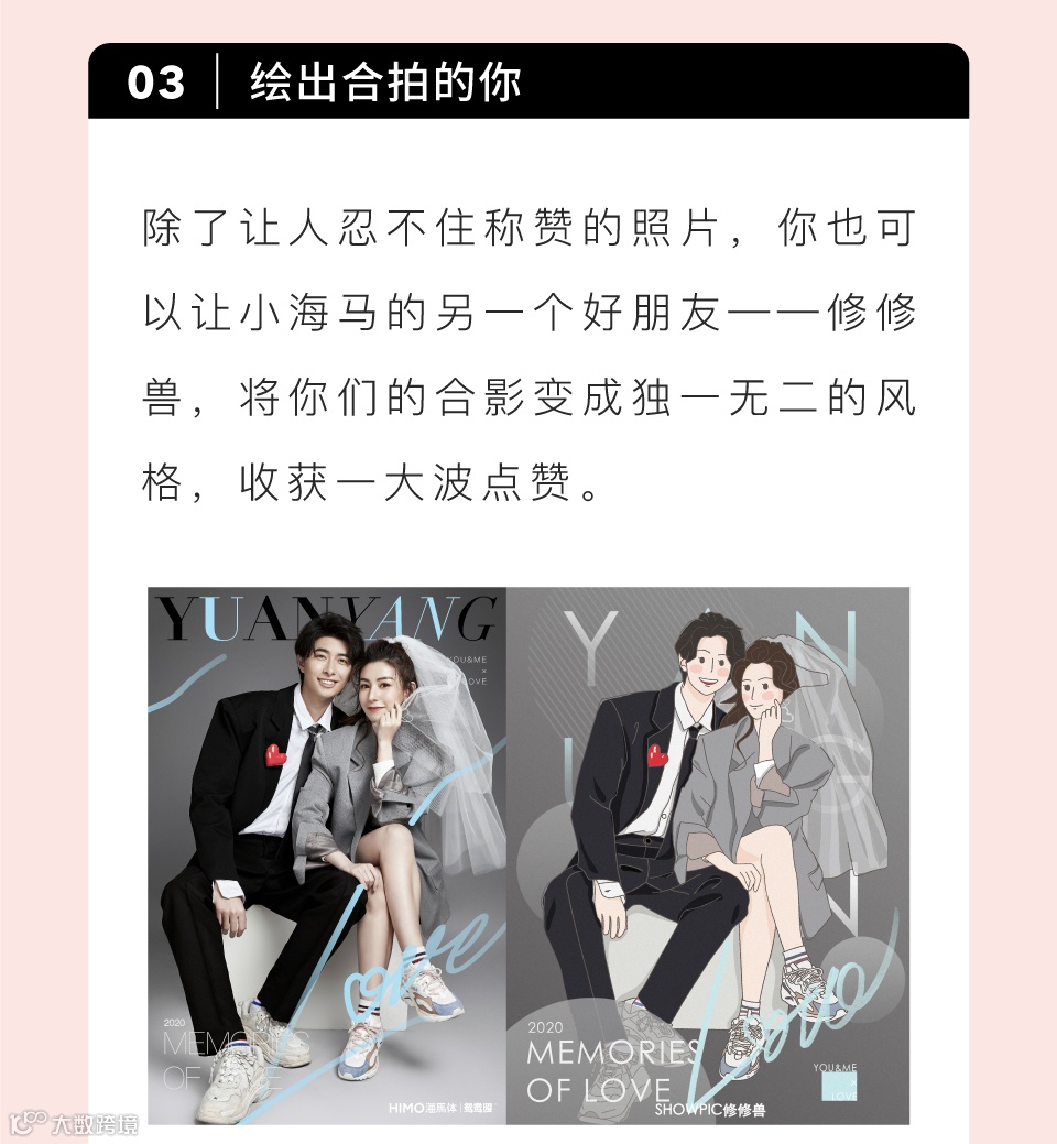 海马体用4种时尚潮酷的风格、全新的摄影构图和潮流的原创贴图,为你们打造精致又甜蜜的合拍回忆!