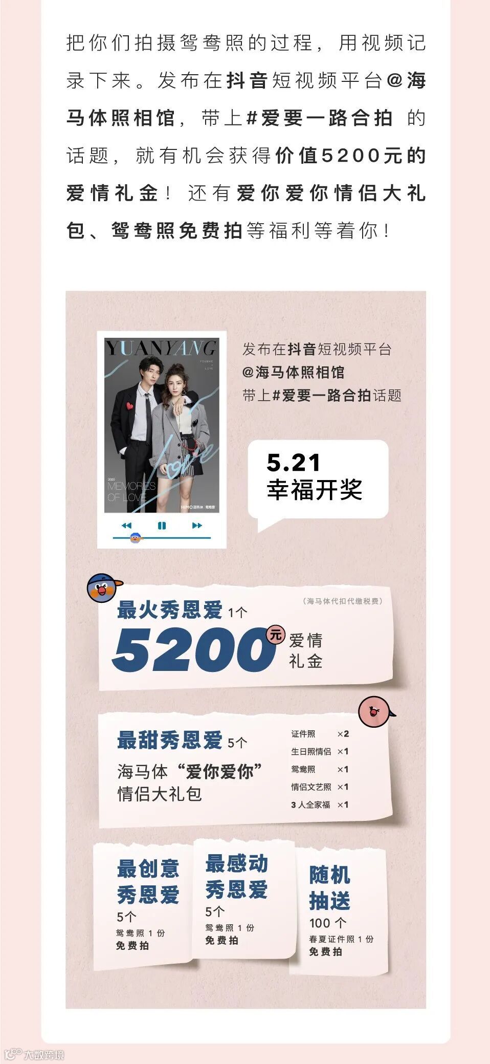 在这特别的日子里,海马体记录爱情甜蜜新品——鸳鸯照,正式上线,让你们的爱情更合拍!