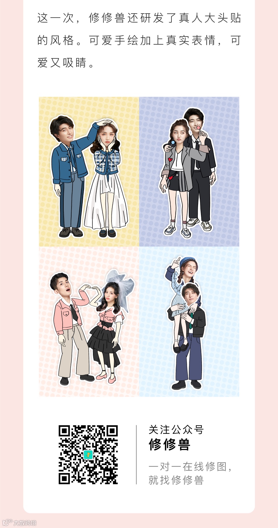有爱的修修兽,也可以把你们的登记照改造成可爱的头像,把它放在婚礼邀请函上发送给朋友再合适不过。