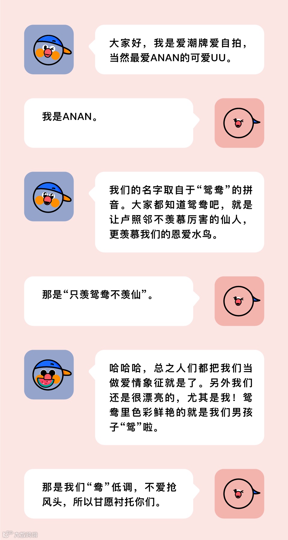 UU和ANAN的体型是爱心的形状,带着爱诞生的它们,这次还给大家带了一份充满爱意的礼物——鸳鸯照,想用这份情侣合照,让你们更加合拍!