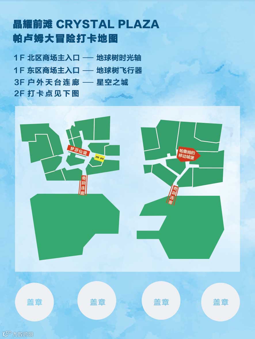 即日起至11月8日期间,晶耀前滩Crystal Plaza x 摩伽Motostuhl帕卢姆大冒险主题展中,我们可以根据攻略地图指示,抵达晶耀前滩内这些打卡点并收集图章,一步步完成这场冒险之旅。