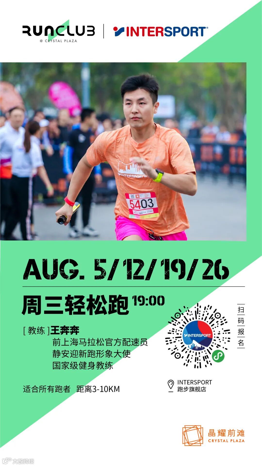 周一节奏跑,周三轻松跑,周日社交跑