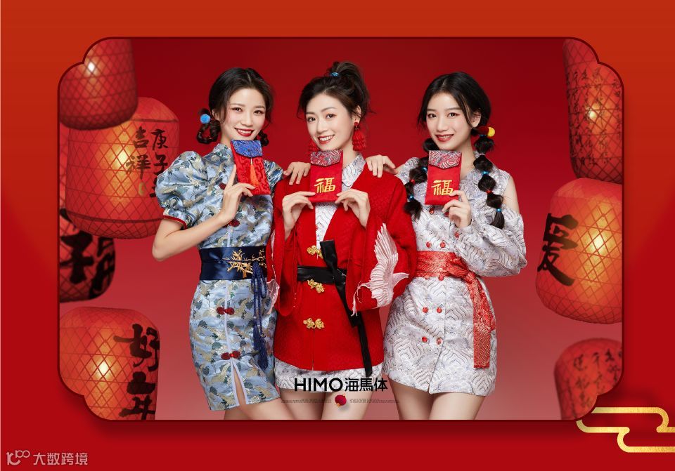 精致的缠花头饰和灯笼、红包等道具,既不会喧宾夺主,又能点缀出过年的欢乐画面。