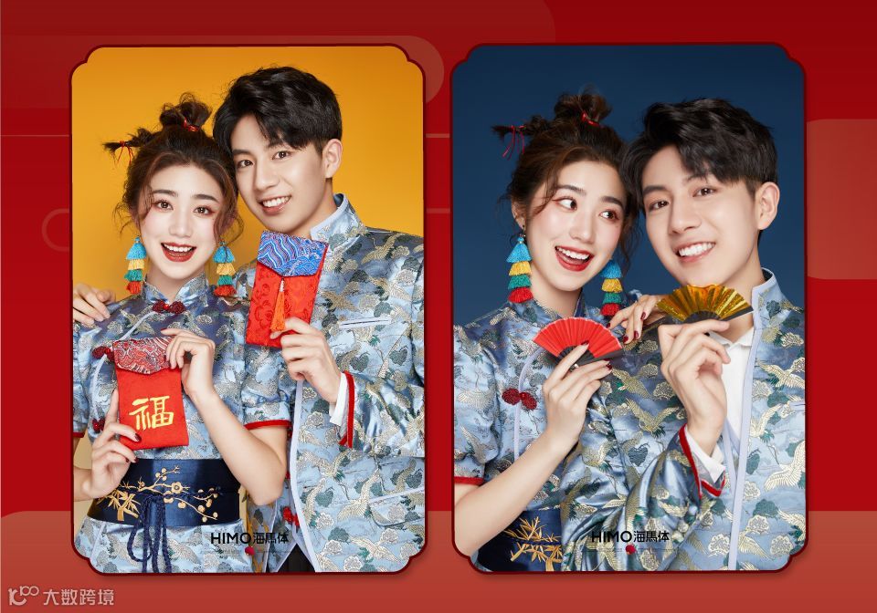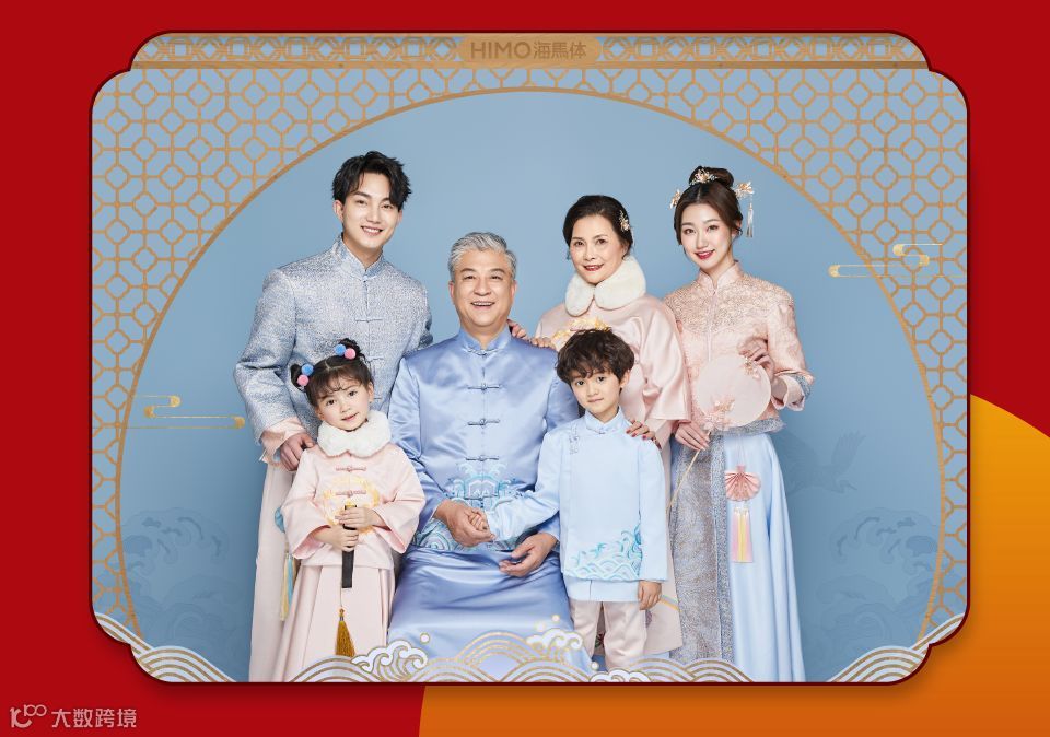 新中式风格的「锦绣」系列,采用时下流行的粉蓝配色和传统的中式花纹,光泽感的面料和画面明媚的质感,为全家福增添时尚新意。