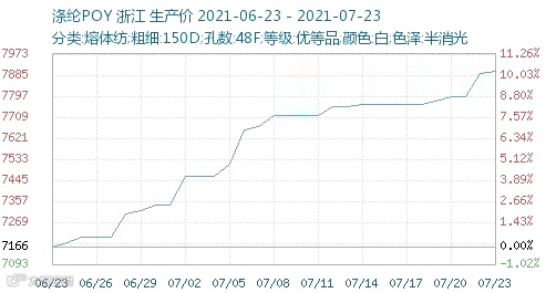 周内,氨纶总的涨幅已经达到了1500元/吨。前一天甚至部分氨纶厂通知上涨价格:20D涨3000元/吨,30D以上涨2000元/吨,上涨幅度惊人。