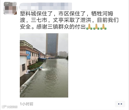 目前下姚江水位已超过堤防的警戒和保证水位,且水位呈快速上涨趋势,受此影响,多个园区发布紧急停业通知。
