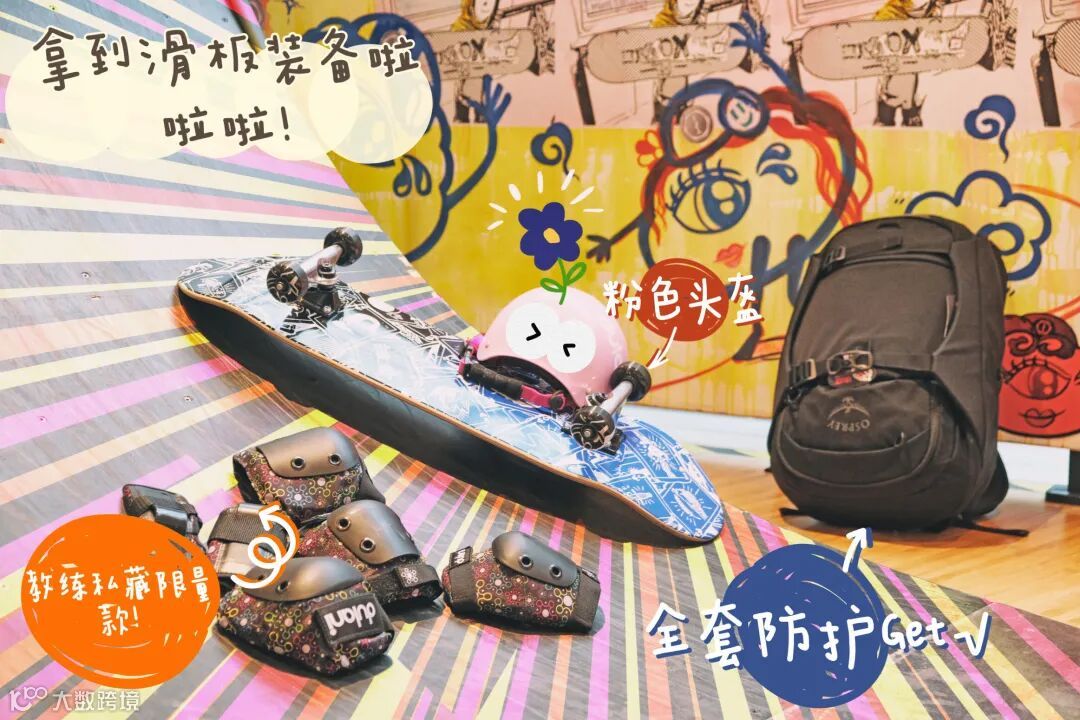 在晶耀前滩场内品牌ICONX滑板老师James ——美国滑板协会认证的酷帅教练的指导下,Hilda圆满解锁了这项新技能!