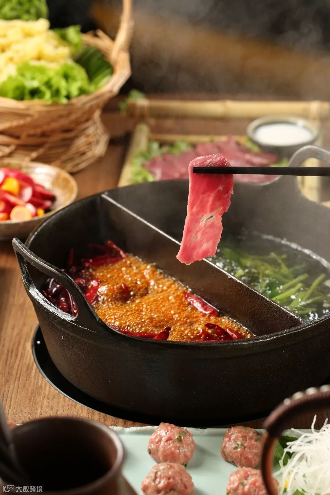 为不负宾客的殷切期待,尽膳口福跷脚牛肉火锅对晶耀前滩新店的打造耐心细致。餐厅甫一亮相便深得各界赞叹。新店环境开敞宜人、装潢古朴雅致。餐厅进门处一箩箩洁白新茧,流动着置身山乡般的桑蚕气韵;用餐区则有一架架竹篮铁釜,传递着悠悠数千载的巴蜀情致。