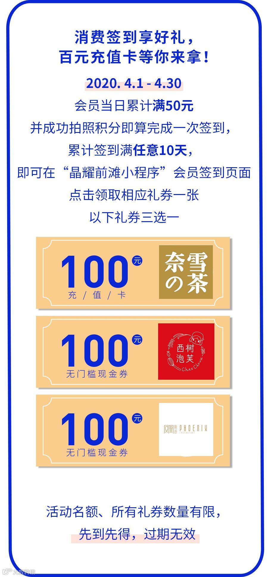 晶耀前滩的4月新福利也上线啦,
