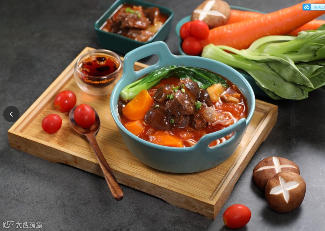 川厨尝试西式食材,用澳洲M9级牛腱肉来炖煮,西红柿、胡萝卜、香菇、土豆等并用,加入秘制的黑胡椒汁,来一碗,冬天暖意涌上心头。