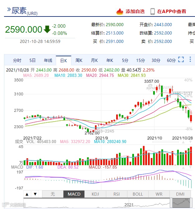 在动力煤大跌的拖累下,尿素期货价格从19日的高点3300元/吨,到目前的2532元/吨,尿素经过6个交易日的下跌,跌幅已经达到23%。