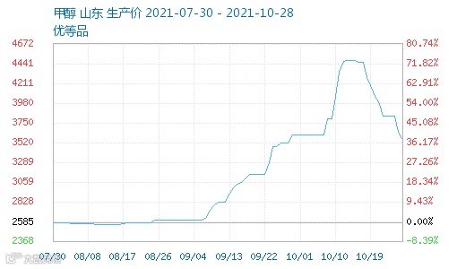 甲醇报价3523.33元/吨,日跌400元/吨。