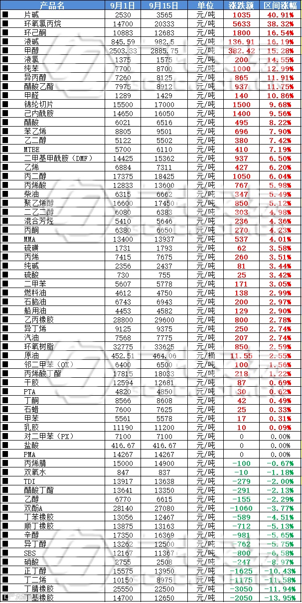能源双控对于原料供给无疑造成强烈冲击,原料供给缺口将不断扩大,外加“金九银十”需求有所增加,预计部分化工品将出现供应短缺的现象。