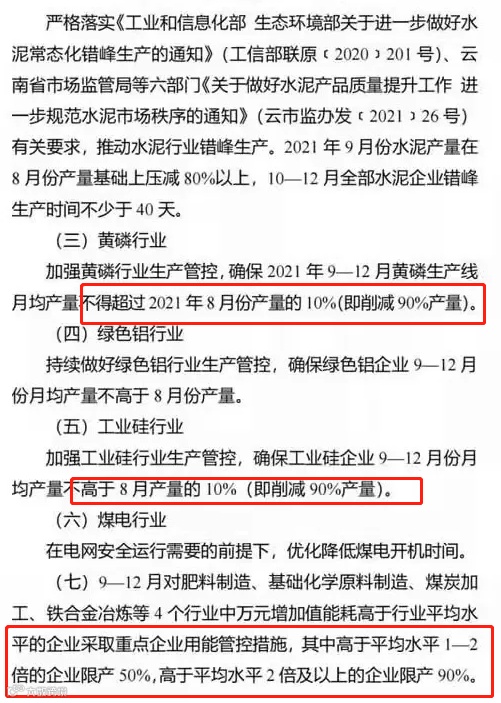 ▶云南省:黄磷、工业硅主产省削减90%产量