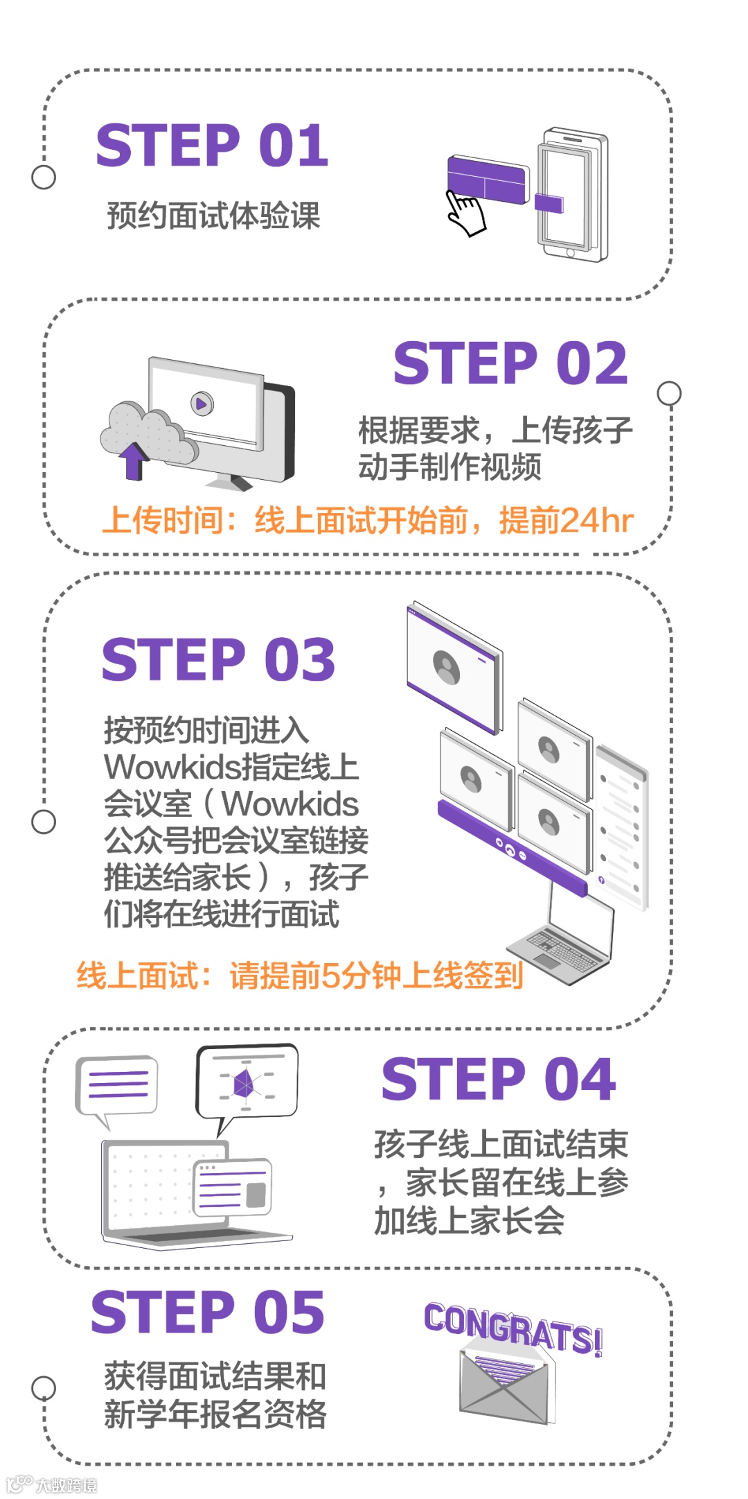 本着既方便家长孩子,又能让我们观察和了解到孩子具体表现的原则,Wowkids今年的面试体验课将以全新线上形式进行。
