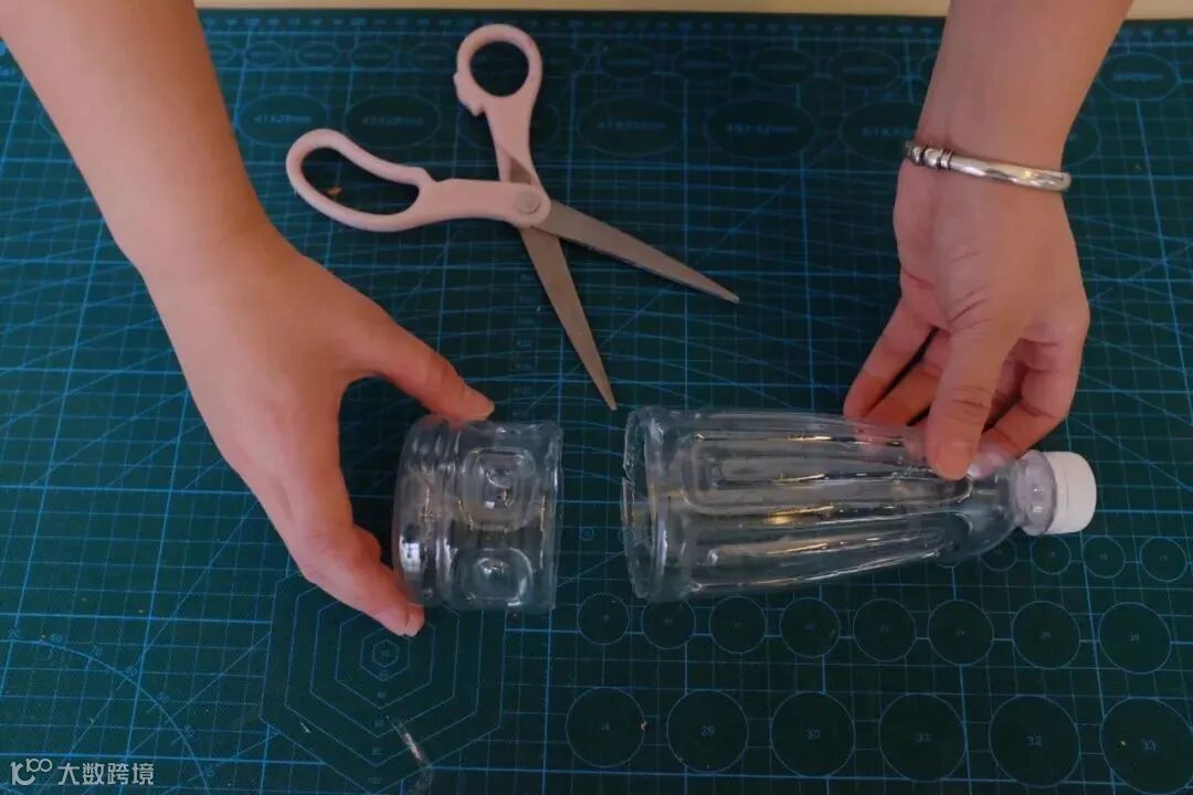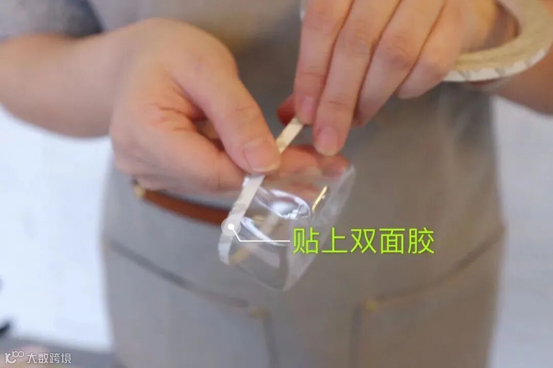 剪下矿泉水瓶底部,并在四周贴上双面胶