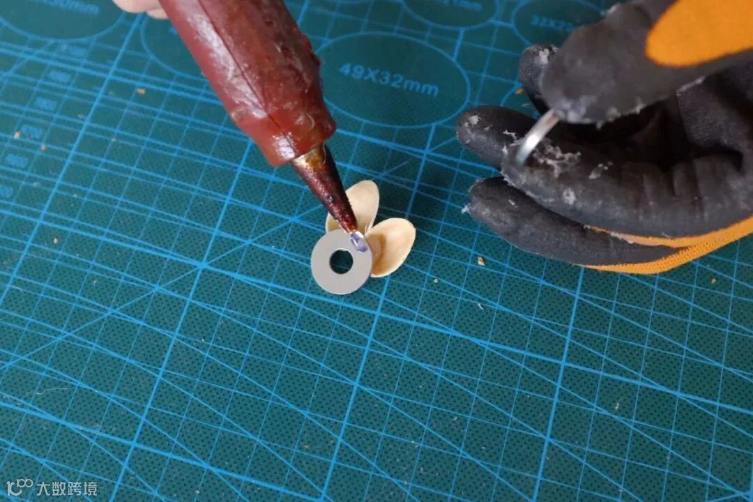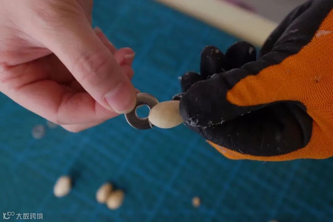 将开心果壳黏在金属垫片上,做成小昆虫的翅膀
