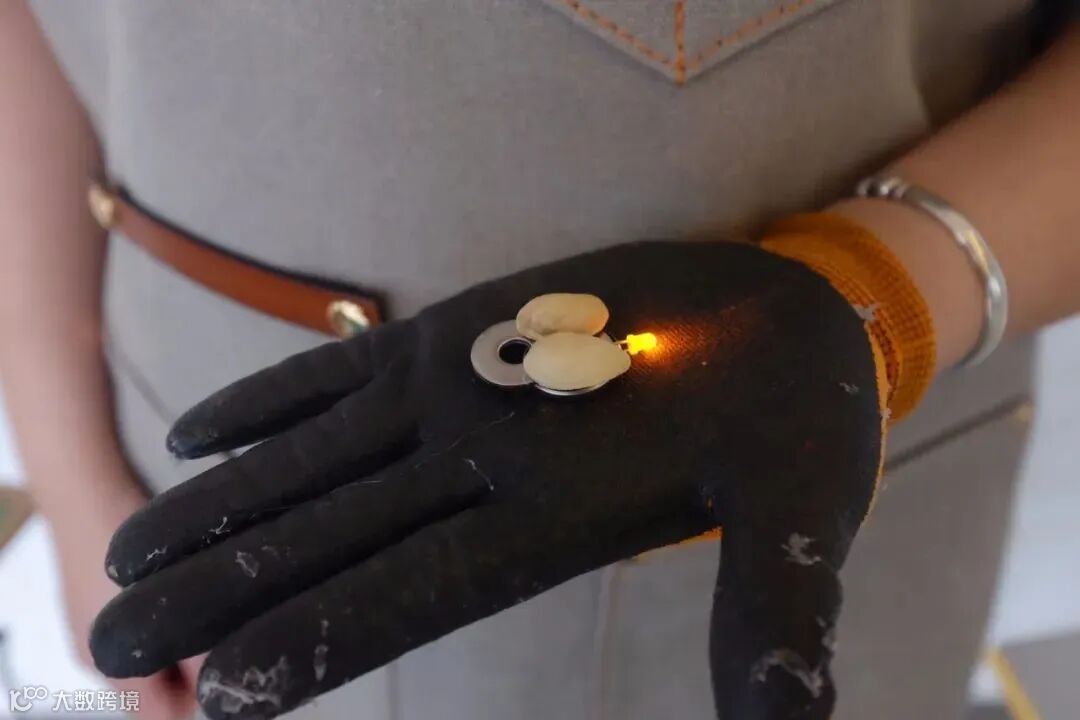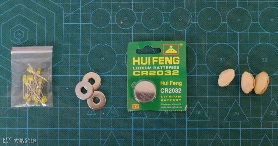 在翅膀下方贴上一枚纽扣电池,与金属垫片重叠
