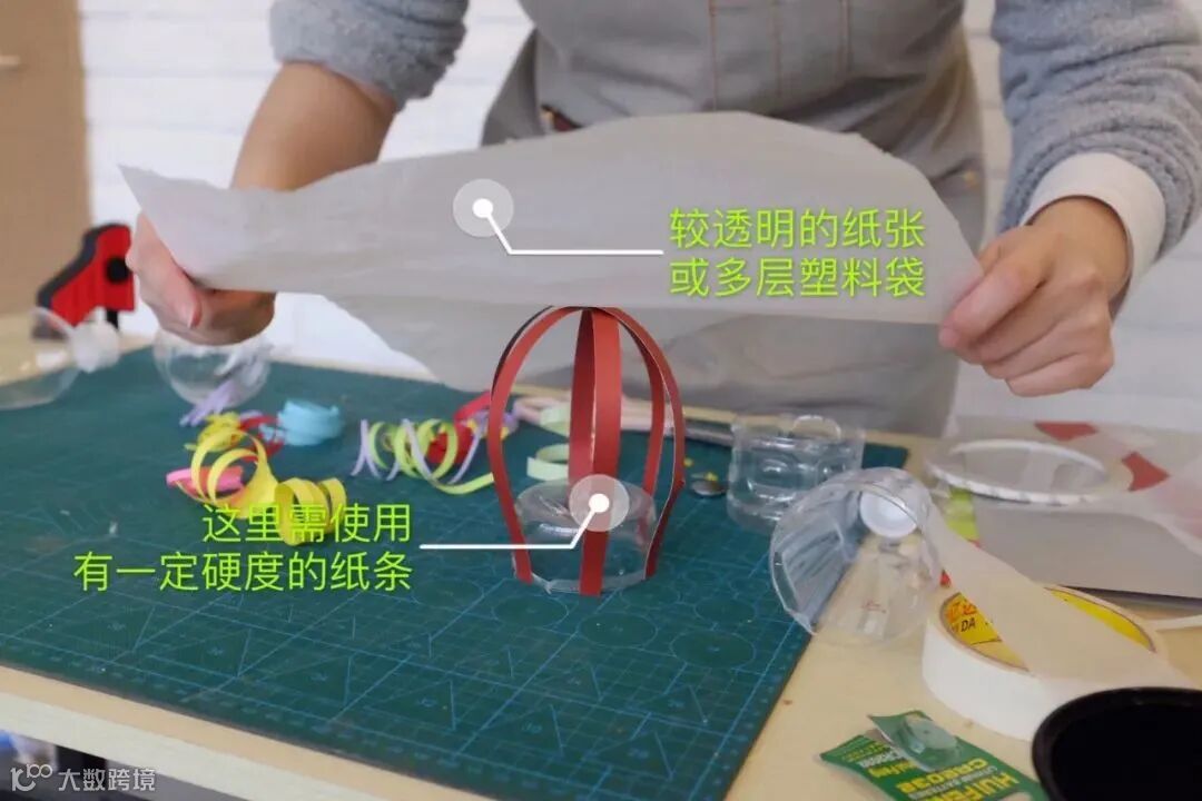 用有一定硬度的纸条,沿瓶底四周搭起一个拱形灯罩