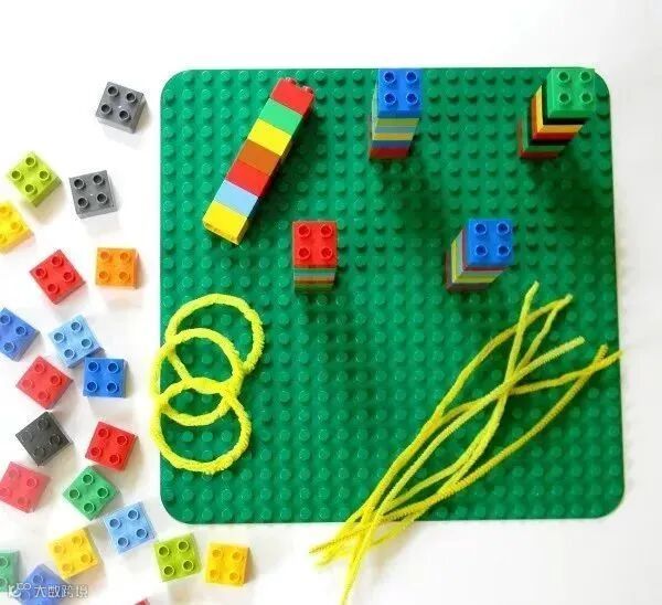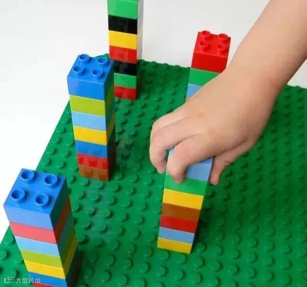 把乐高搭成一座座塔的样子,每座塔之间有一些间距