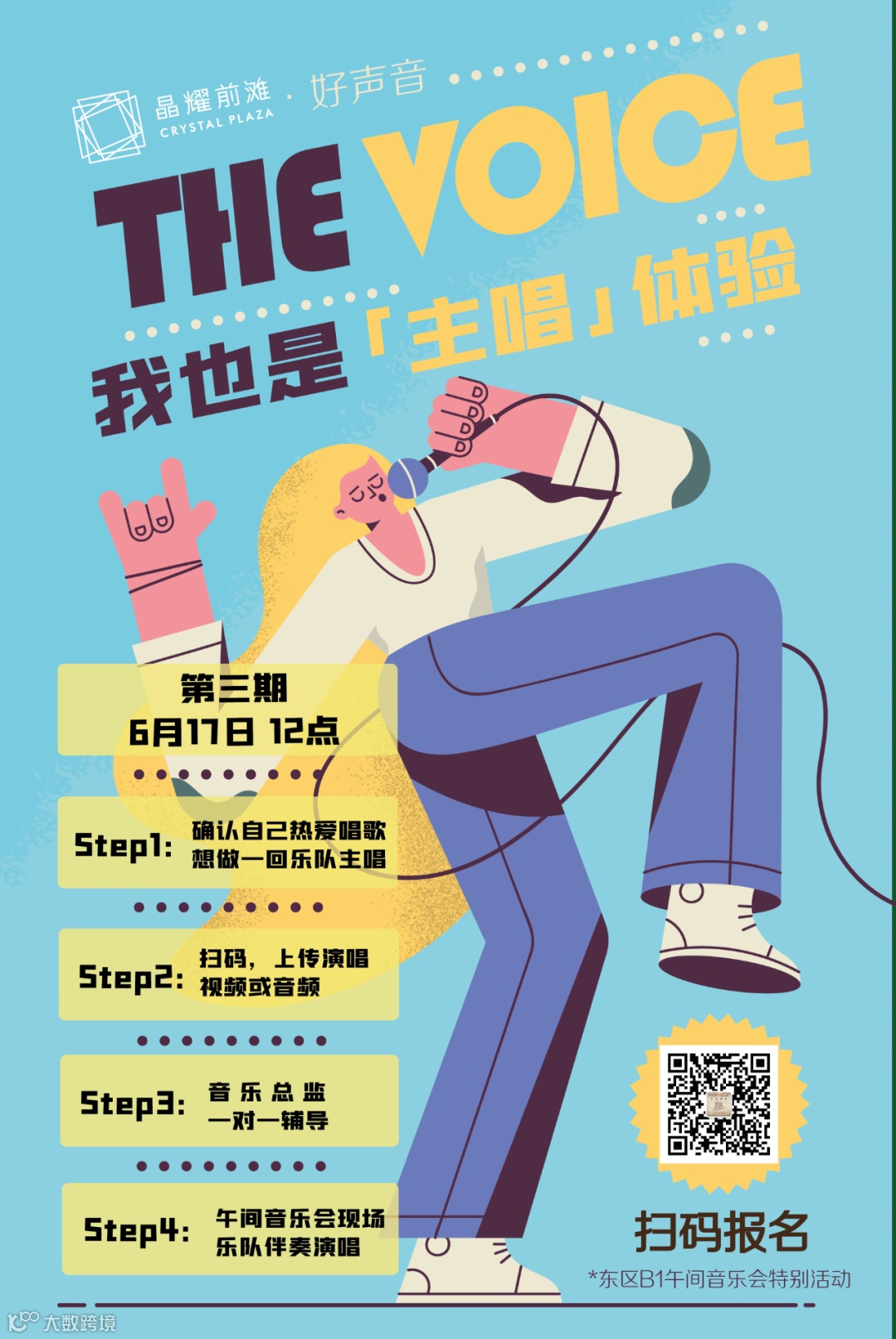 如果你也想在晶耀前滩的午间音乐会一展歌喉,让更多听众为你的歌声动情聆听,请长按下方二维码,或添加客服微信报名:tanxiculture,即可有机会成为下一位乐队新主唱!
