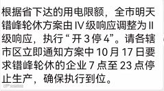 近日,江苏省各大化工企业频频收到用电限额通知,其中,常州市的错峰轮休方案由IV级响应调整为II级响应……同时其他各地的限电力度继续加大,开二停四、周末限电继续演绎。