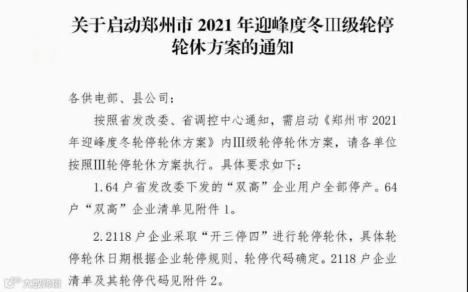 近日,国网河南省电力公司郑州供电公司发布通知,10月15日起启动《郑州市2021年迎峰度冬轮停轮休方案》内Ⅲ级轮停轮休方案。