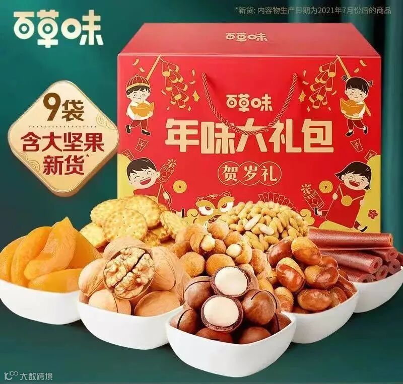 「百草味」巨型零食大礼包,用30+新年小零嘴,包裹住一份超大的爱!品类多多,诚意满满,将年味好福气抱个满怀。