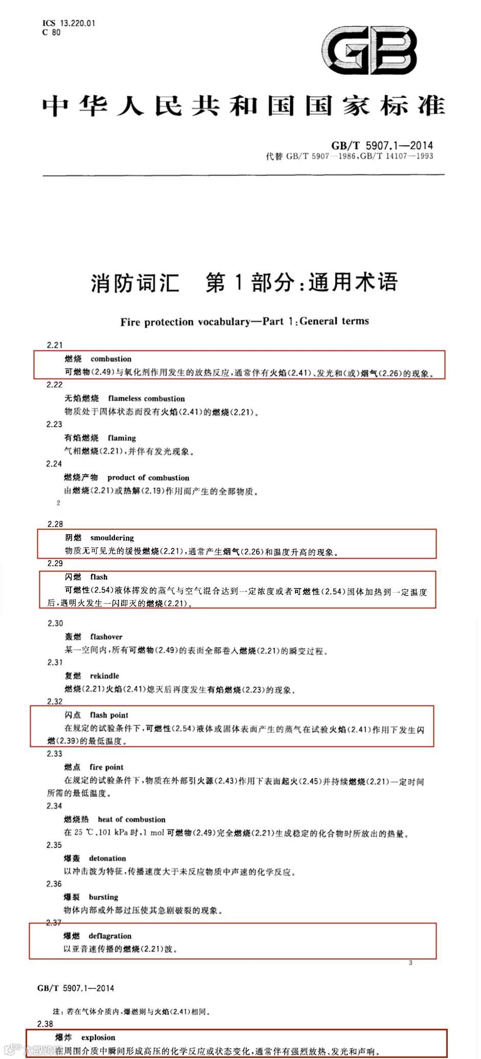 我们可以查阅一下官方的权威资料:《中华人民共和国国家标准 消防词汇 第1部分:通用术语(GB/T 5907.1-2014)》,这也是最新修订的官方标准,应该算是权威定义了。