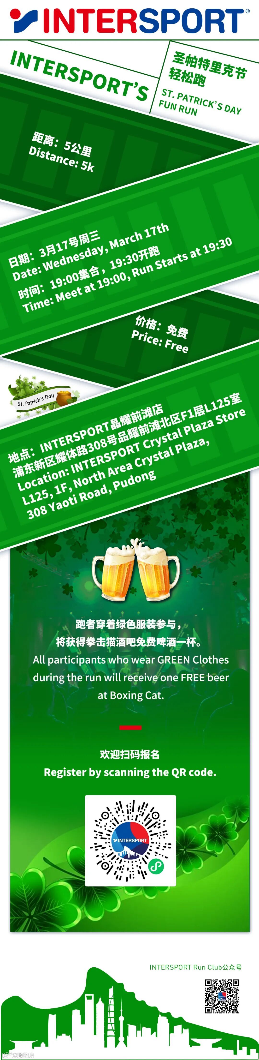 活动丨RUNCLUB跑团俱乐部!穿绿衣参与活动赠免费啤酒一杯!