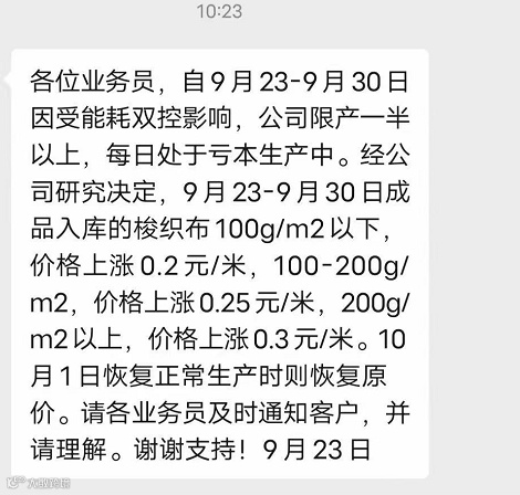 “昨天下午我们染厂还有布在染,接到临时通知要求晚上停产,我们只能把缸里的布拉出来,烘干之后等开工之后再做。”9月22日,一位面料厂的老板说导,目前这一片的印染企业都已经停工,“以往限产停产会提前通知,我们有时间准备库存,但是这次太突然了。”