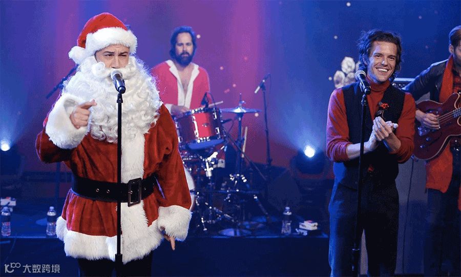 圣诞老人会加入乐队,表演一首圣诞主题歌曲,