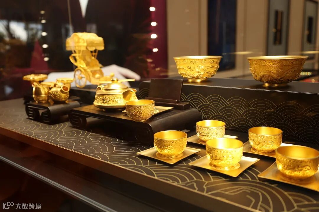 藏宝金采用了国家非物质文化遗产的古老铸金工艺。这种工艺出自于宫廷造办处,专门为皇室贵族做金器所用。藏宝金讲究返璞归真,表面哑光的感觉是古法工艺的特点。藏宝金色泽温润,华而不炫,贵而不显,突出内敛、低调的奢华之感。