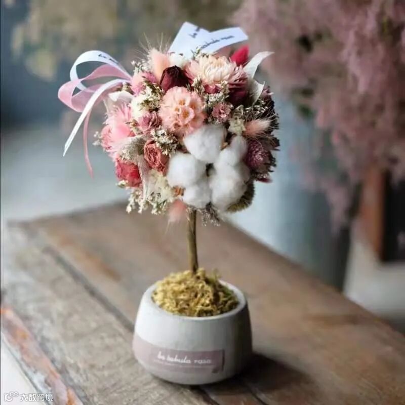 永生绣球、玫瑰花、棉花、尤加利果