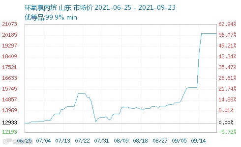 环氧氯丙烷单日上涨250-300元/吨,其中华东市场报价21000-21300元/吨,华北市场报价20600-21100元/吨。预计短期内限电持续,环氧氯丙烷仍以高位为主。