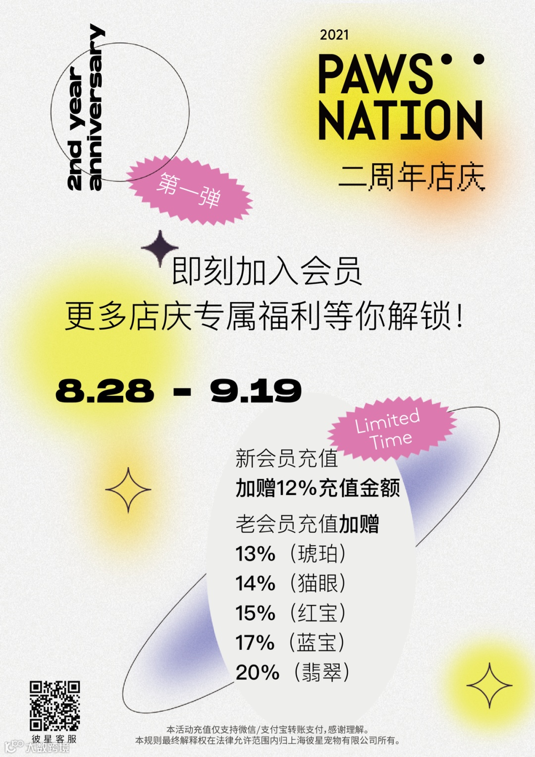 导读:彼星宠物PAWS NATION 两周年店庆,邀你解锁会员的专属福利!