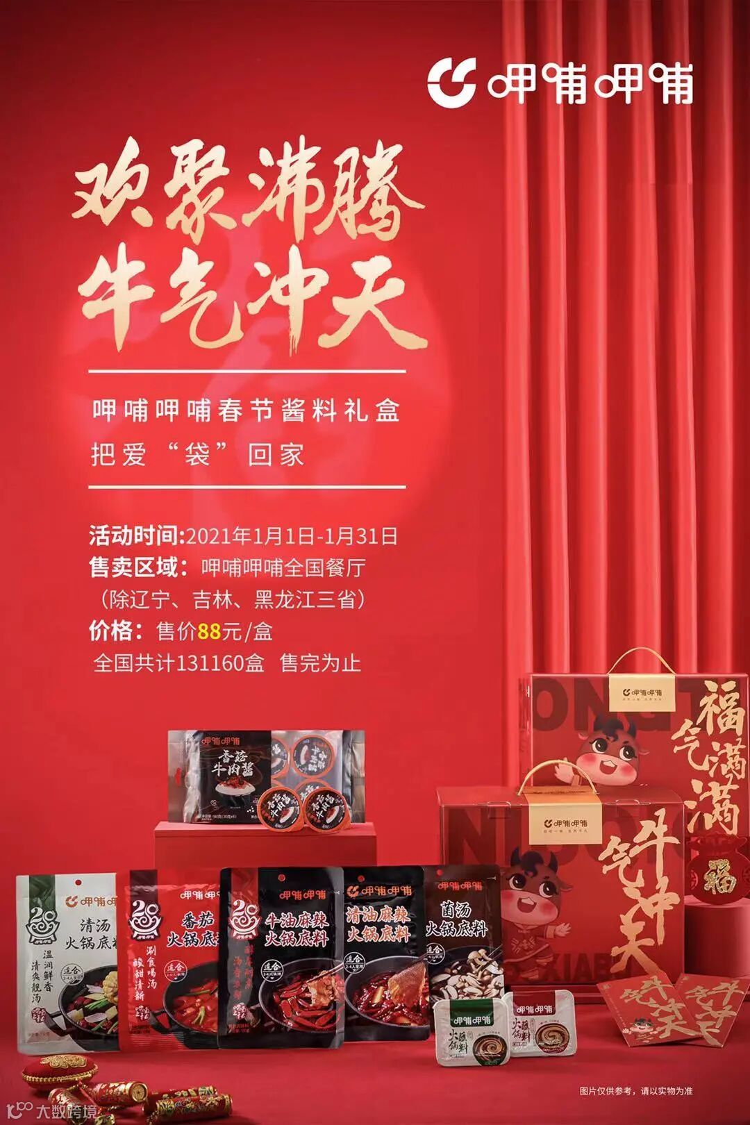 即使是一人食火锅,也要在这个寒冷冬季里,焕发最热闹的新年味道!呷哺呷哺限量推出 春节酱料礼盒 ,内含8种锅底蘸料,纵享热辣多滋味。这个春节,来呷哺呷哺,把爱“袋”回家~