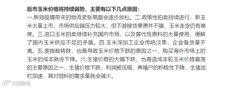 预计8月下旬-9月份期间,玉米价格有一个适度小幅回调整理的过程。