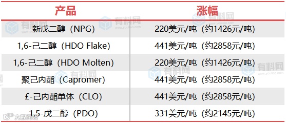 而近日欧美另一家斯泰潘也上调了粉末树脂和多元醇价格,其中STEPANPOL®多元醇的价格上调0.05美元/磅(约710元/吨)。