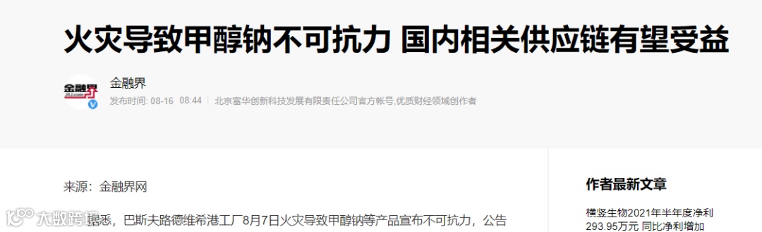 据外媒消息,巴斯夫路德维希港工厂8月7日火灾导致甲醇钠等产品宣布不可抗力,公告预计影响将长达数月。