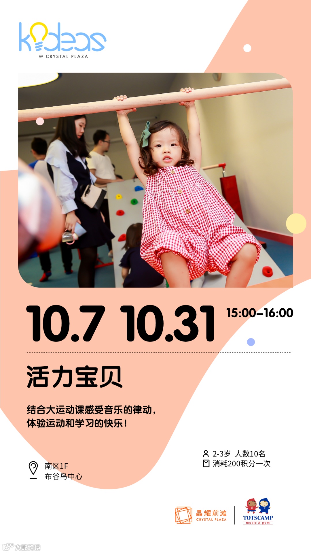 适合2-3岁宝贝参加,消耗200积分即可兑换一次体验课。