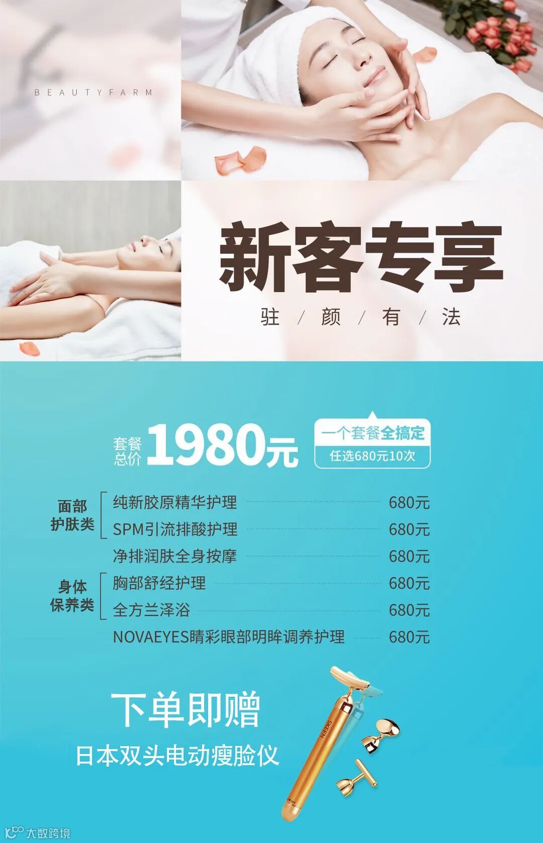 内含身体保养、面部护理共6项任你选择,