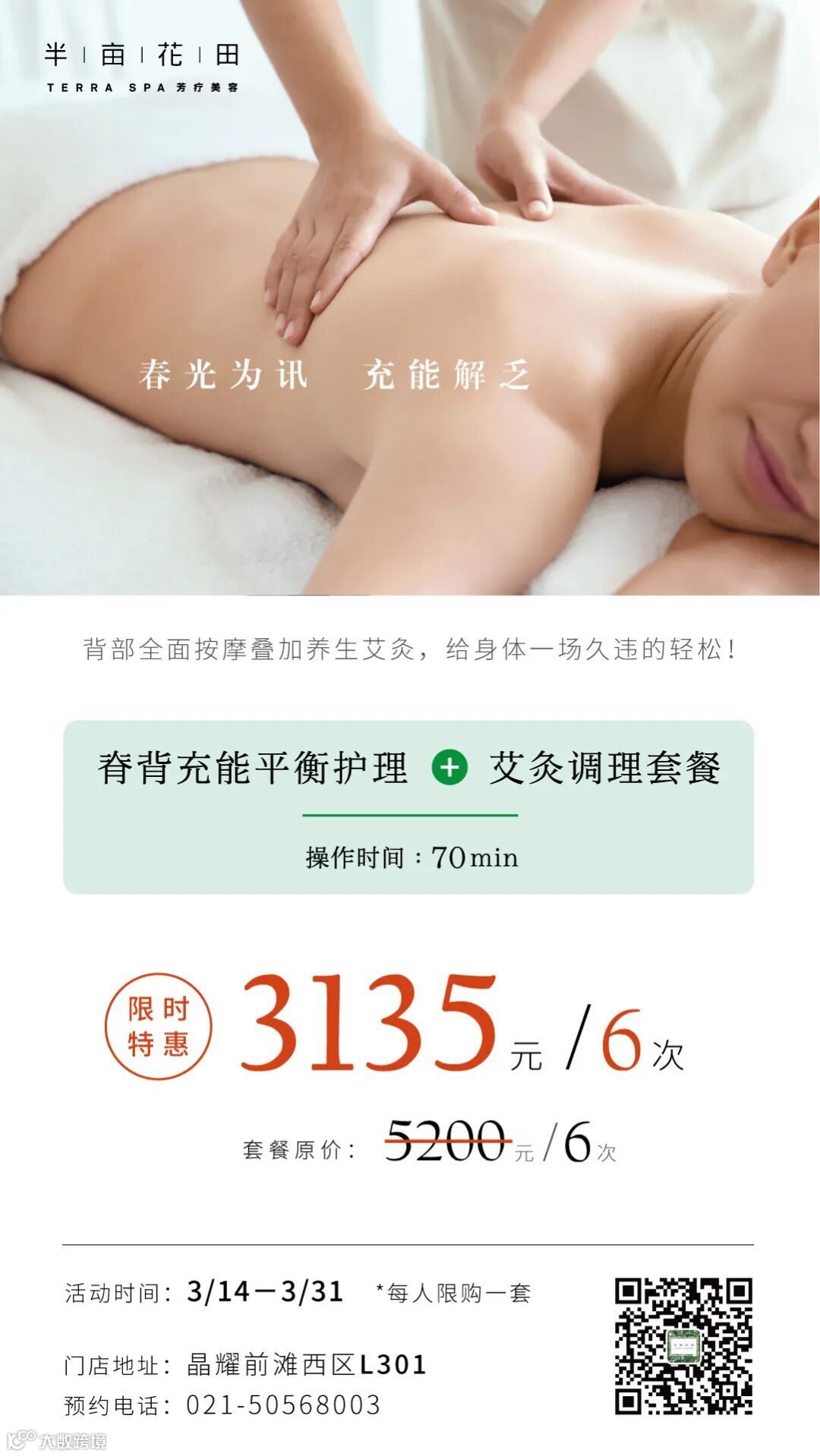 脊柱充能平衡护理+艾灸调理早鸟优惠,